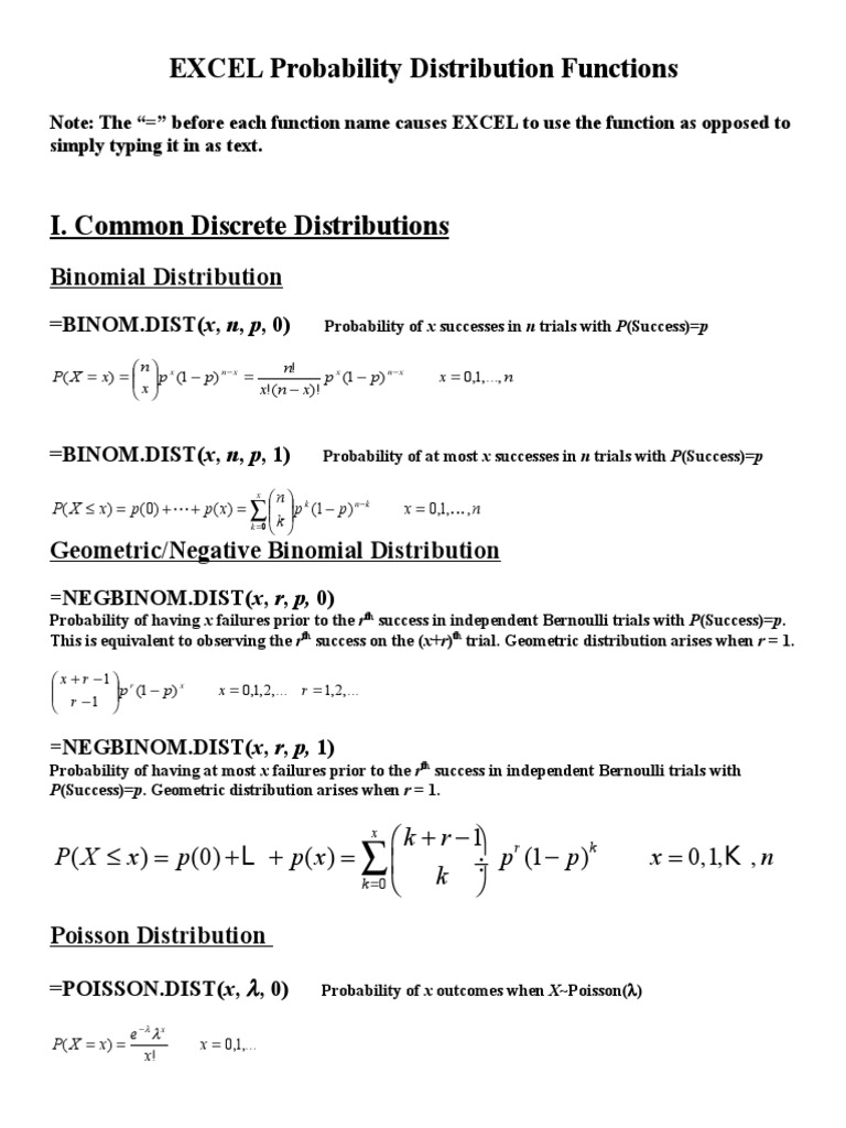 =NORM.DIST(x, , 1) Normal cumulative distribution function P ( X X 0 )