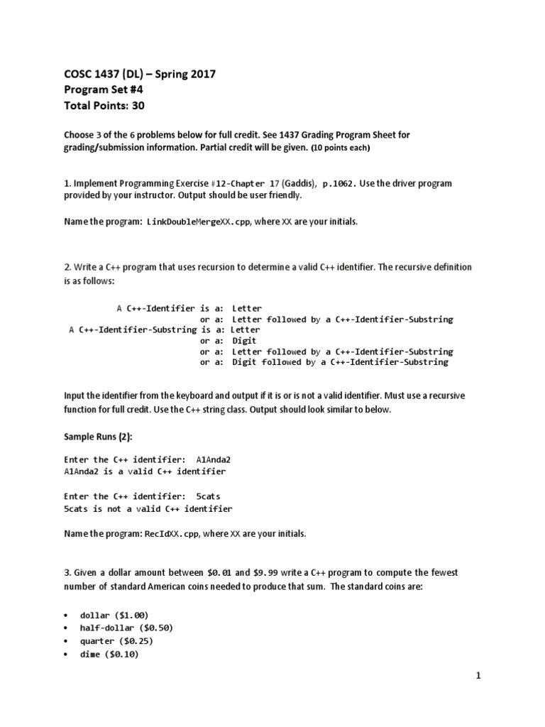 Choose 3 of the 6 problems below for full credit. See 1437 Grading Program Sheet for