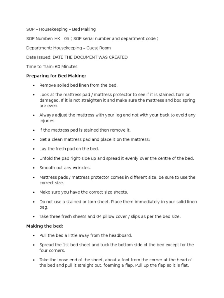 SOP Number: HK - 05 ( SOP serial number and department code )
