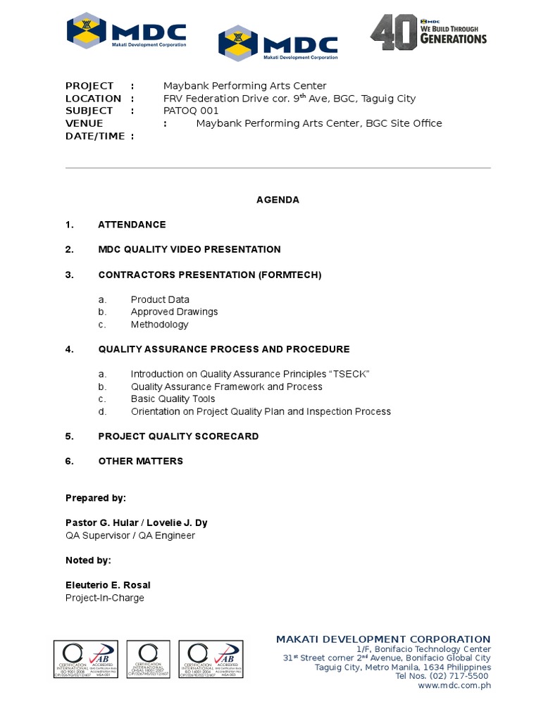 VENUE : Maybank Performing Arts Center, BGC Site Office