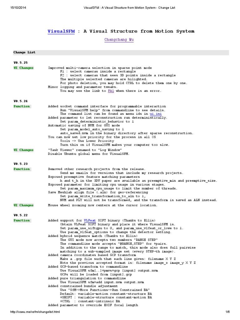 15/10/2014 VisualSFM : A Visual Structure from Motion System - Change List