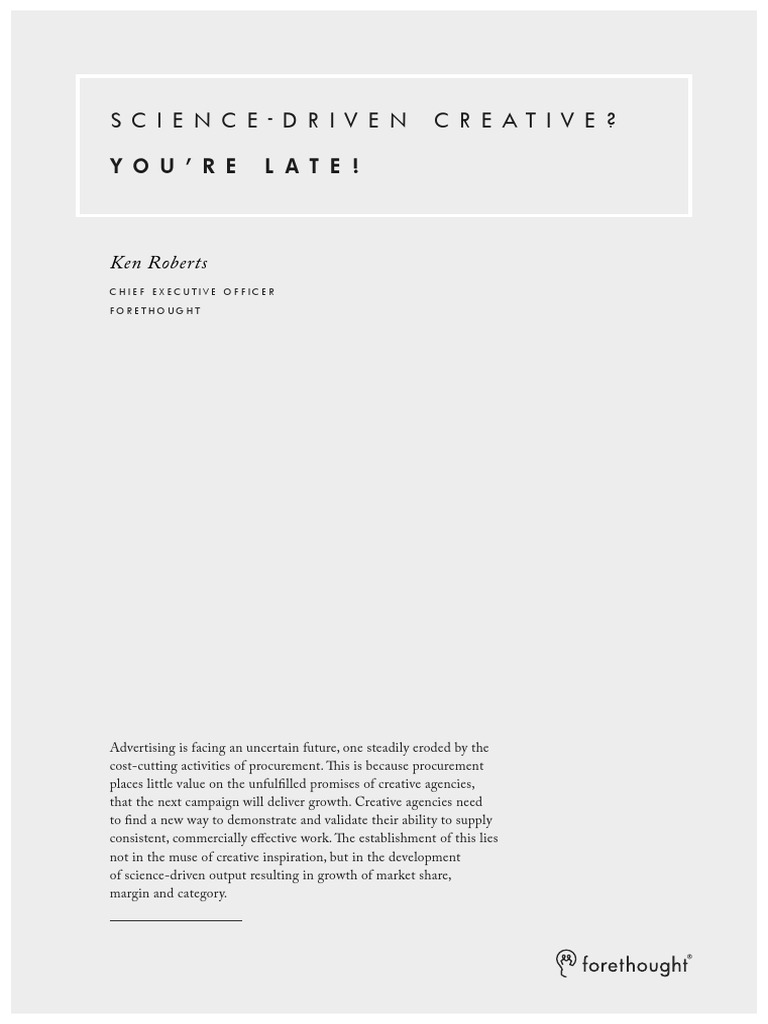 SC I EN CE D RIV E N C REATIV E? YOURE L ATE!