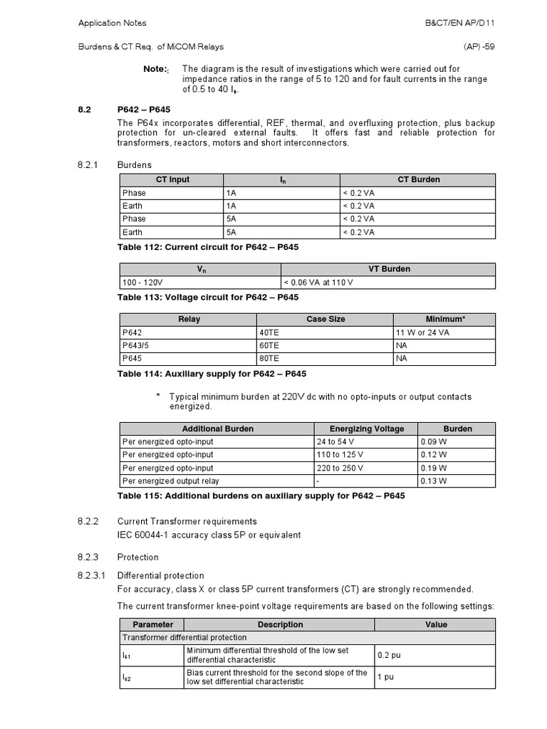 Burdens & CT Req. of MiCOM Relays (AP) -59