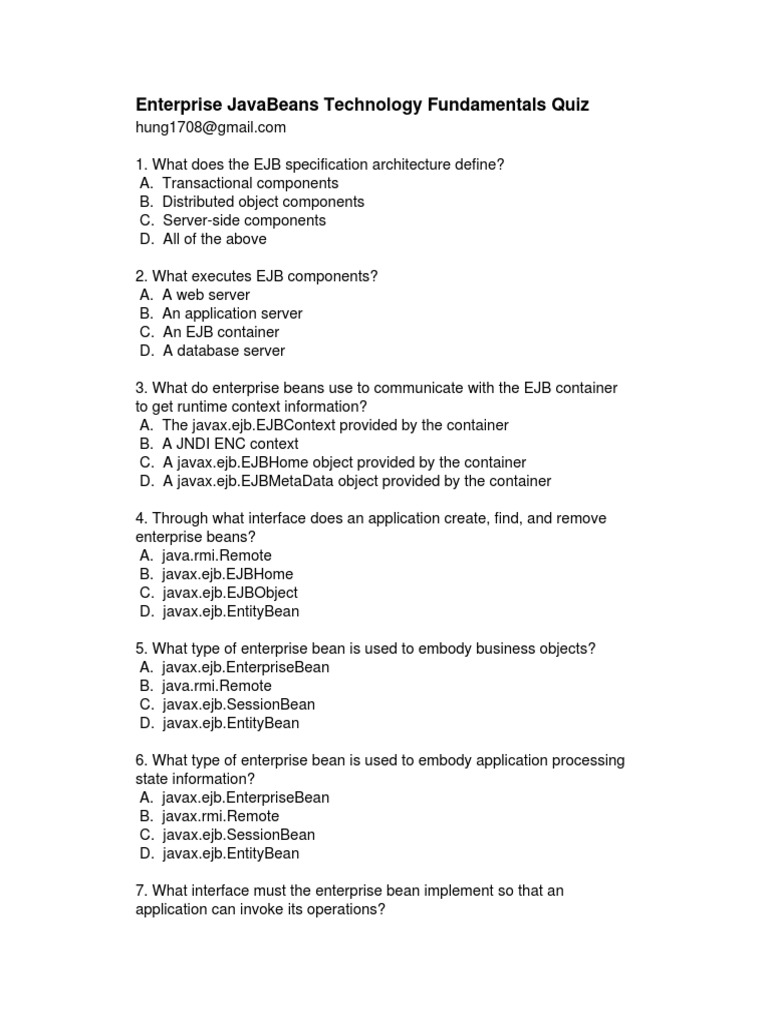 Enterprise JavaBeans Technology Fundamentals Quiz