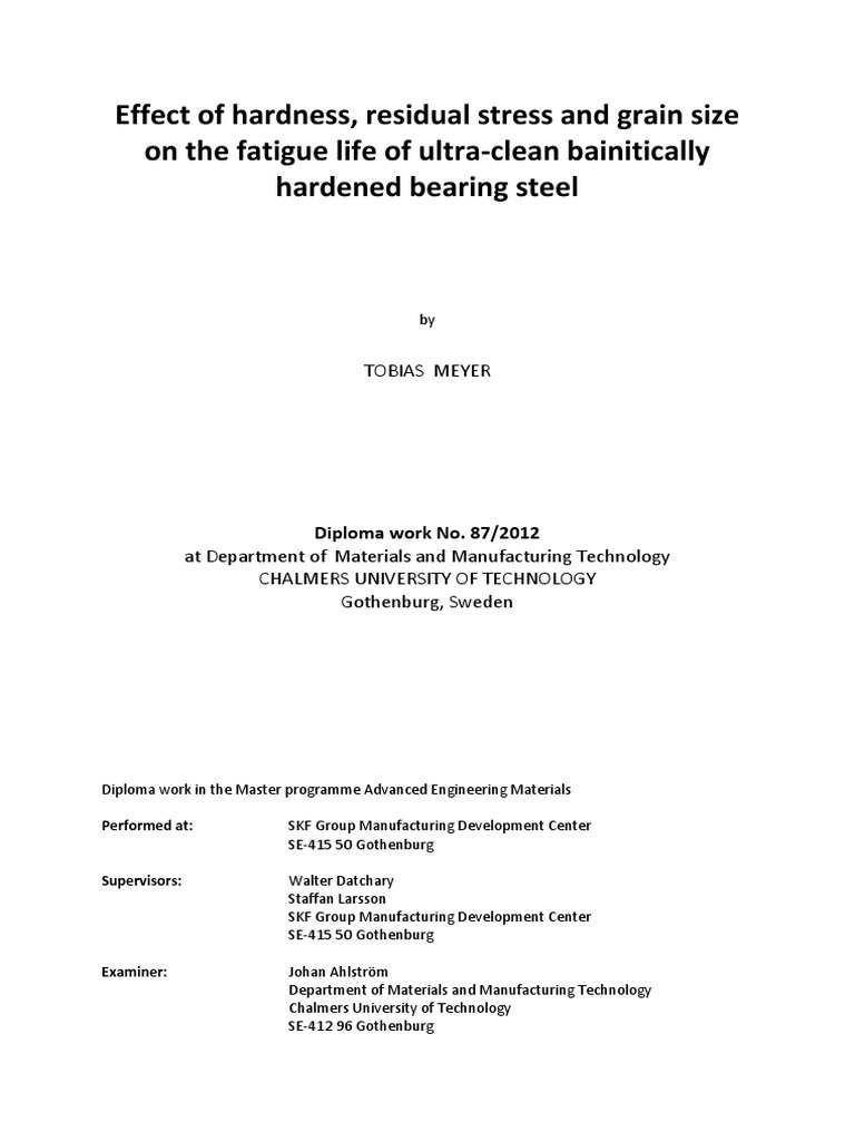 utmattningshllfastheten ssom hrdhet, restspnningar och kornstorlek mttes, dokumenterades