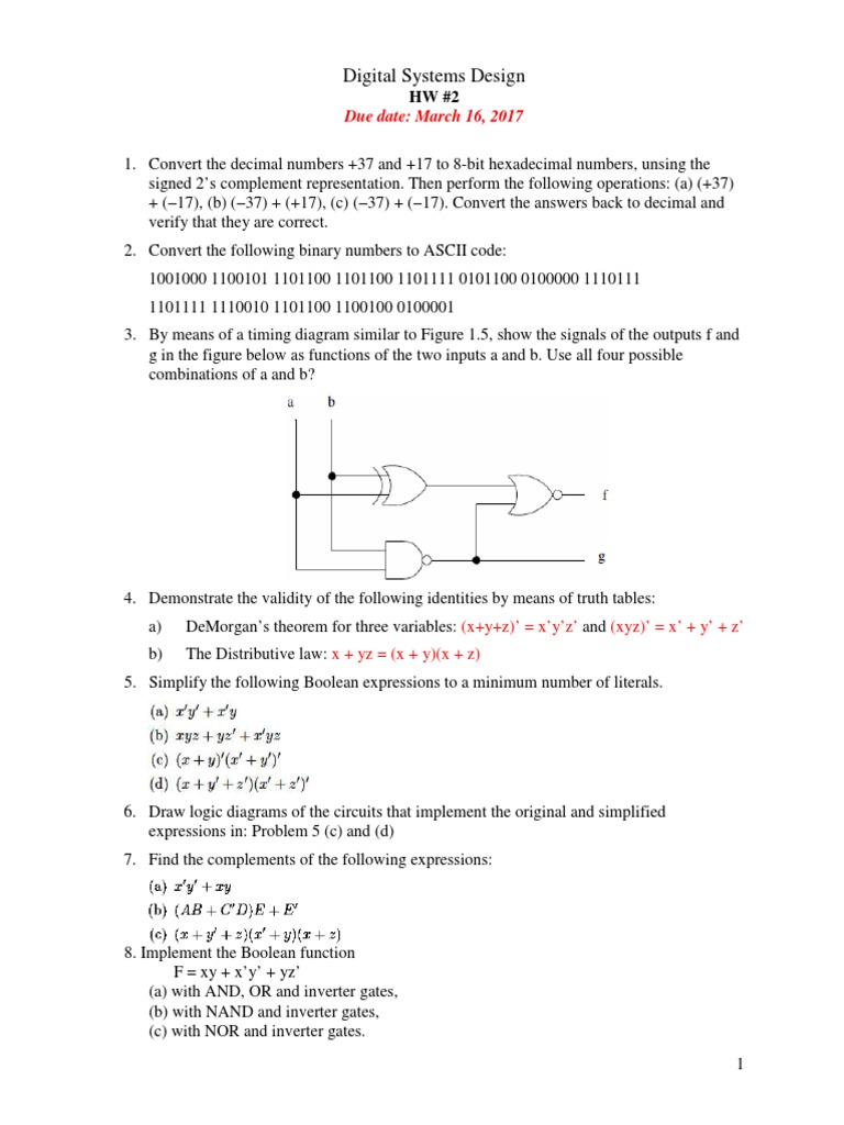 3. By means of a timing diagram similar to Figure 1.5, show the signals of the outputs f and