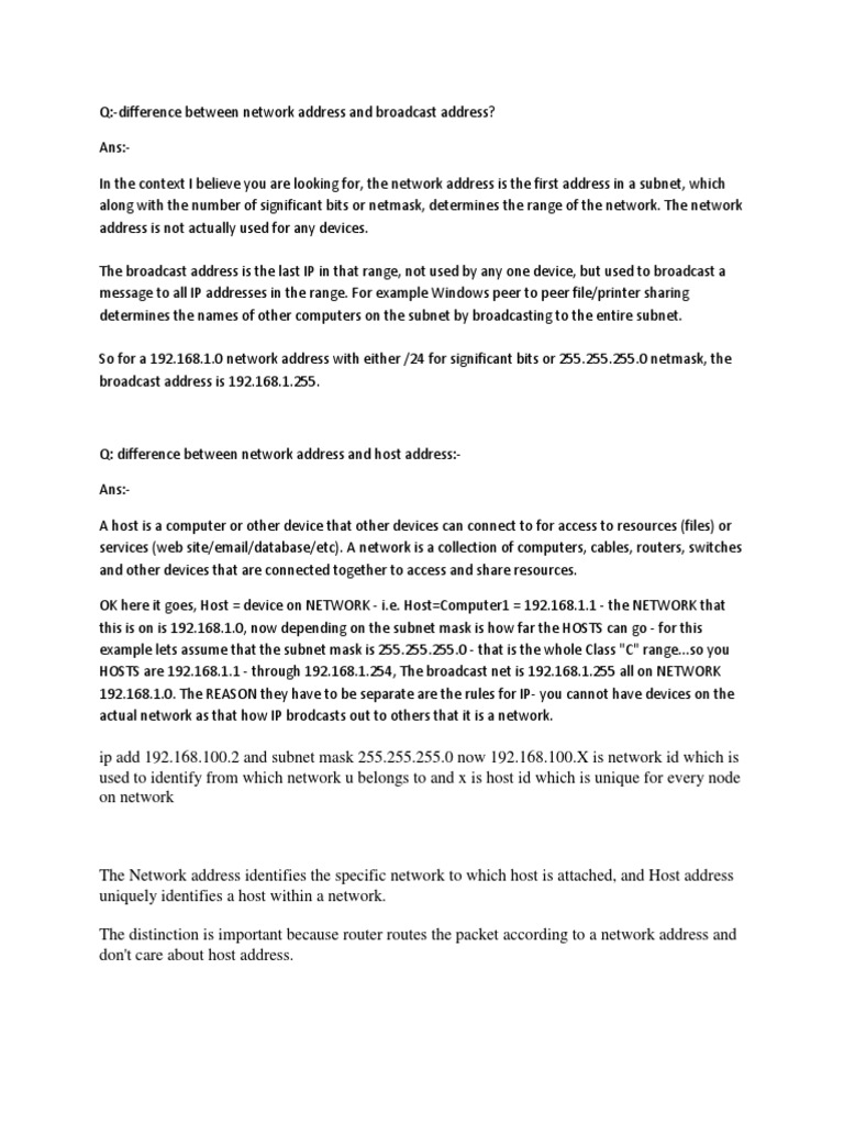 Note:- Host address is the address of the device specific when we put the Zero(0) to the host part of ip