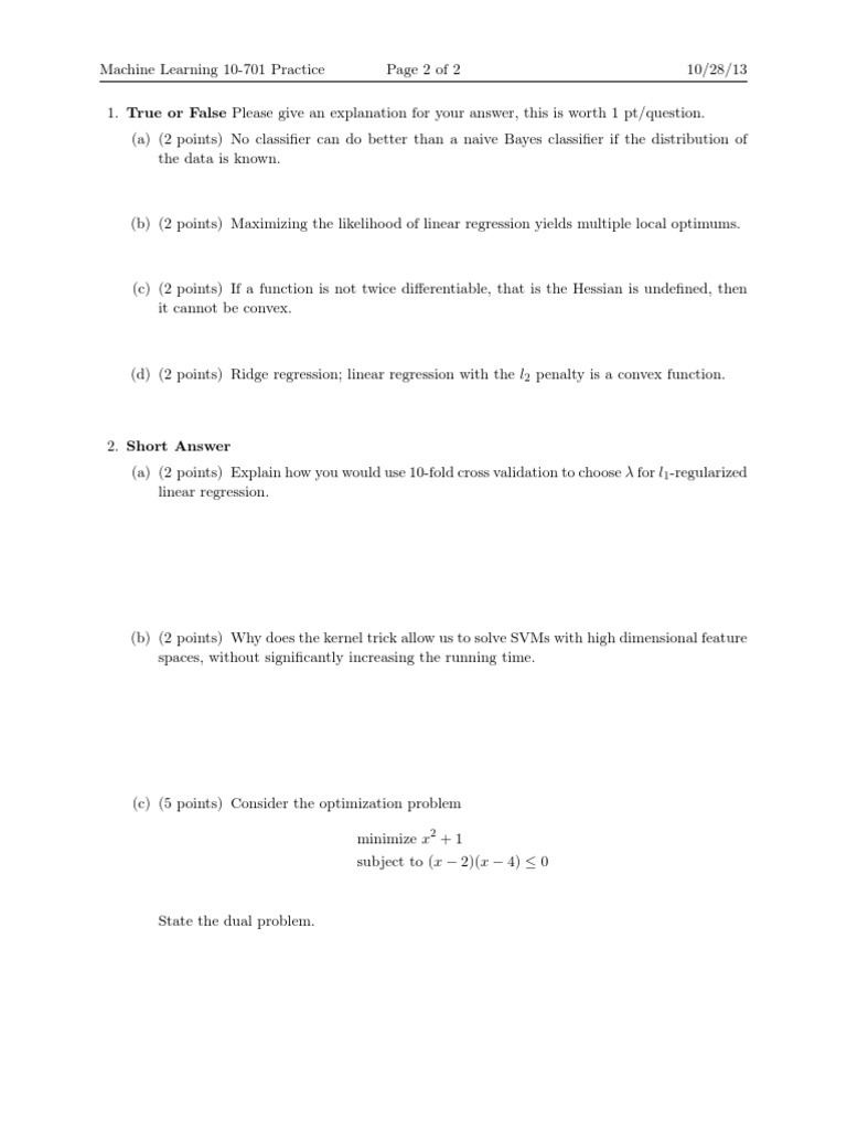 Machine Learning 10-701 Practice Page 2 of 2 10/28/13