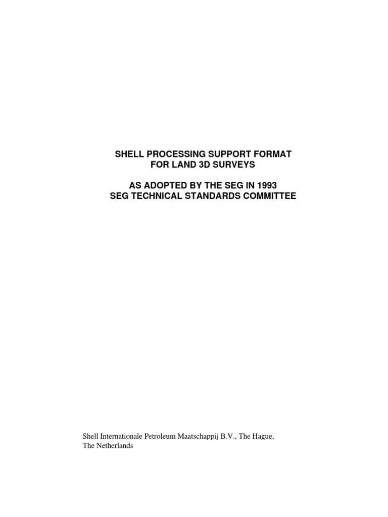 SHELL PROCESSING SUPPORT FORMAT FOR LAND 3D SURVEYS