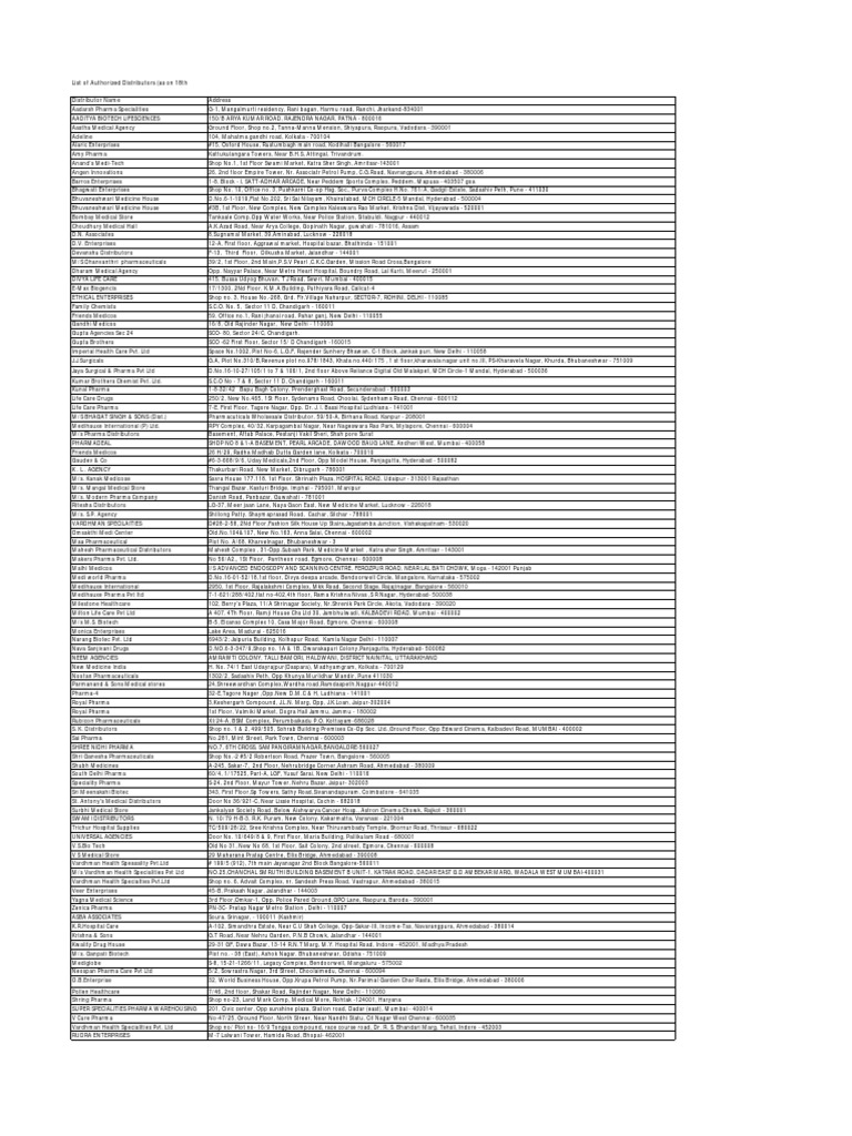 List of Authorized Distributors (as on 18th