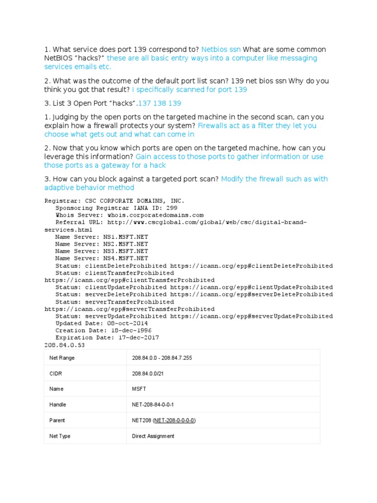 1. What service does port 139 correspond to?