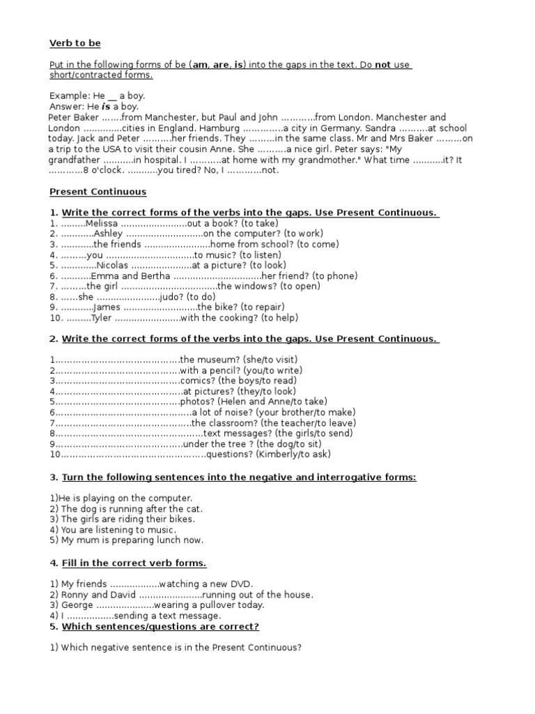 2. Write the correct forms of the verbs into the gaps. Use Present Continuous.