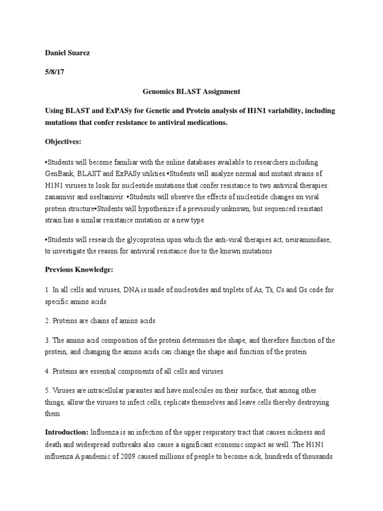 UsingBLASTandExPASyforGeneticandProteinanalysisofH1N1variability,including