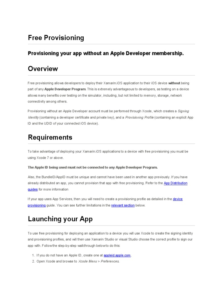 Free provisioning allows developers to deploy their Xamarin.iOS application to their iOS device without being