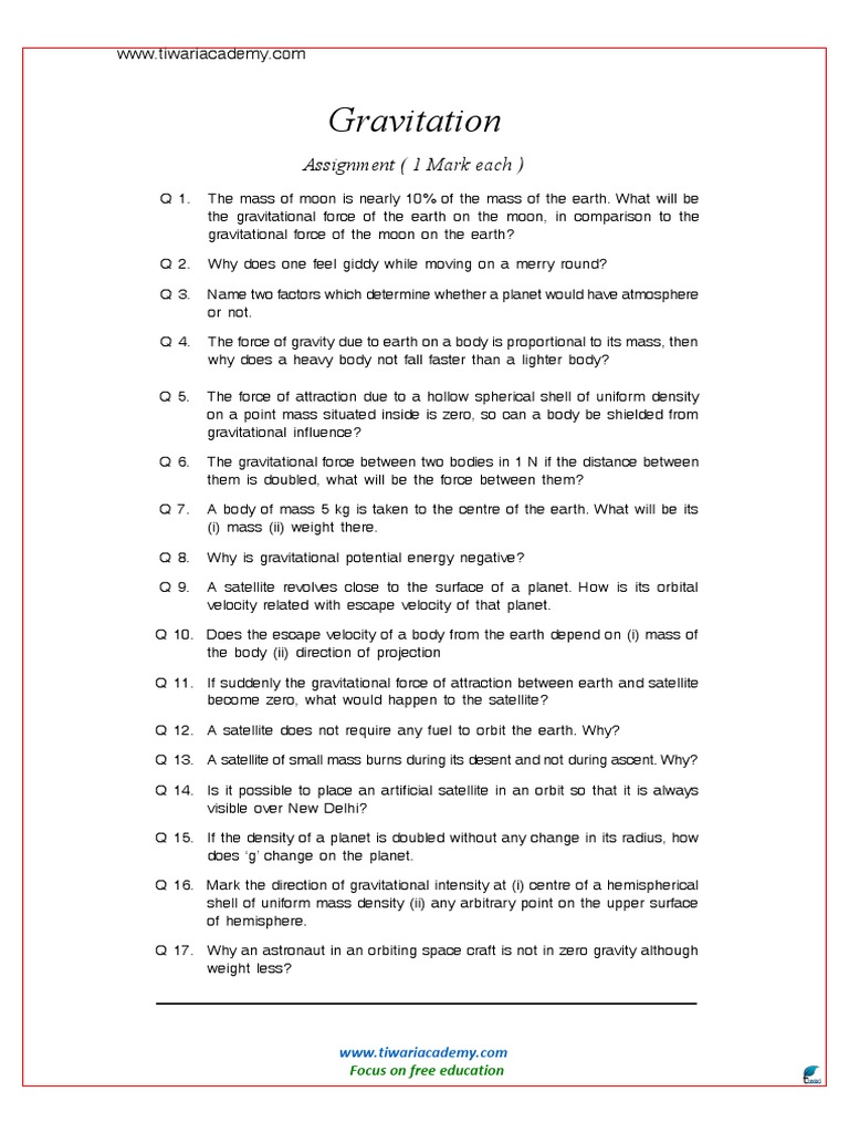 Q 1. The mass of moon is nearly 10% of the mass of the earth. What will be