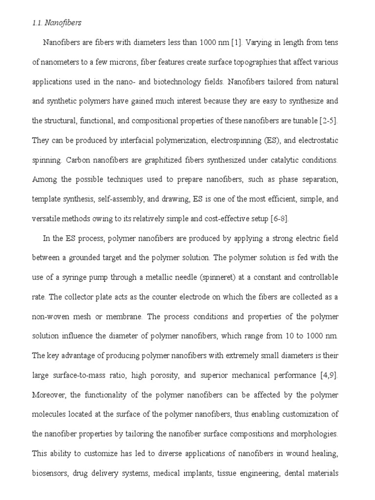 Nanofibers are fibers with diameters less than 1000 nm [1]. Varying in length from tens