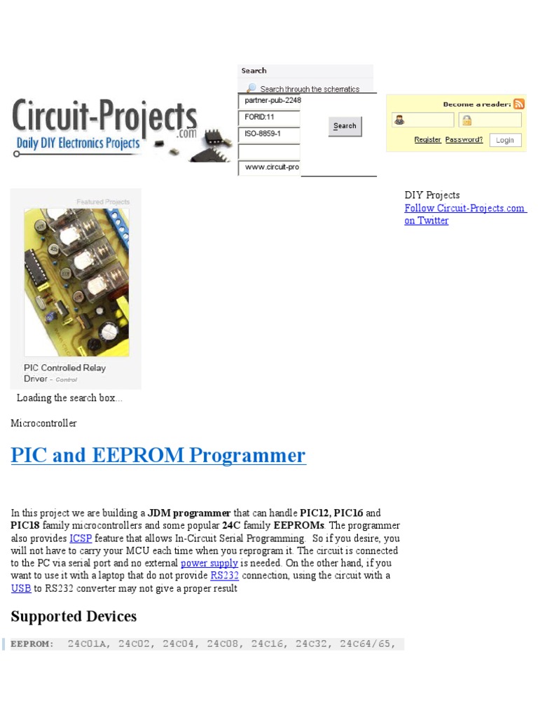 PIC18 family microcontrollers and some popular 24C family EEPROMs. The programmer