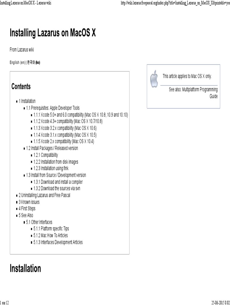 Installing Lazarus on MacOS X - Lazarus wiki http://wiki.lazarus.freepascal.org/index.php?