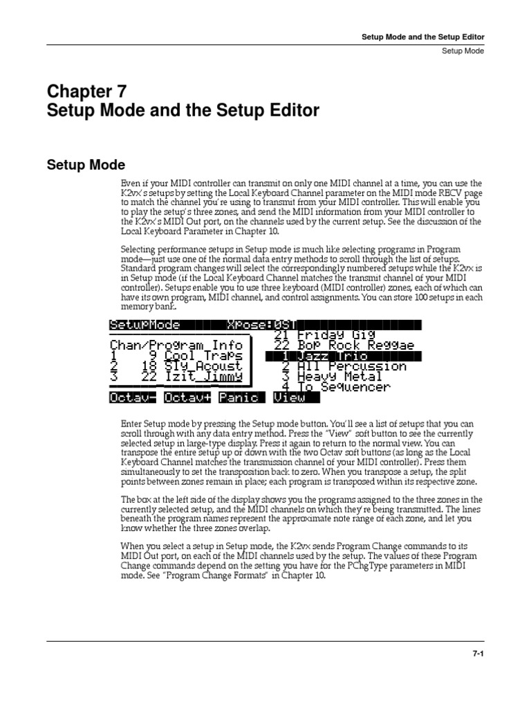 setups from the K2vxÕs front panel or from your MIDI controller when the K2vx is in Quick