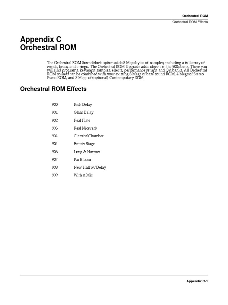 winds, brass, and strings. The Orchestral ROM Upgrade adds objects in the 900s bank. There you