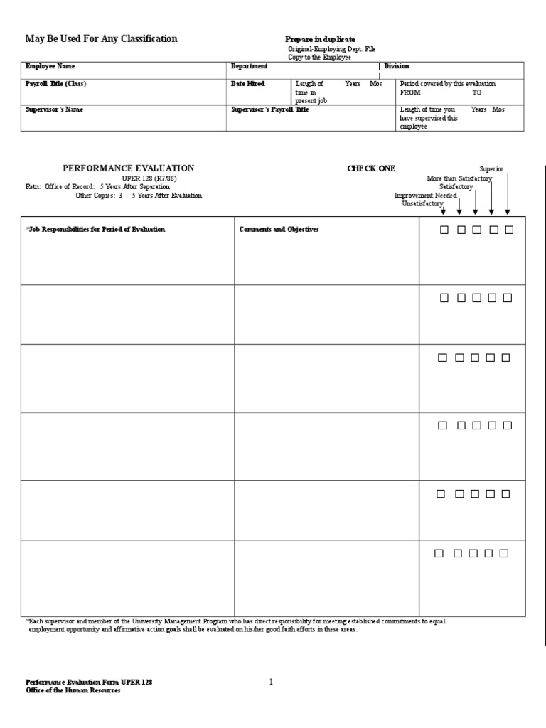PERFORMANCE EVALUATION CHECK ONE Superior