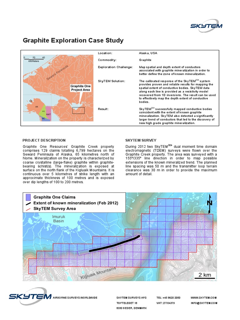 Graphite One Resources Graphite Creek property During 2012 two SkyTEM304 dual moment time domain