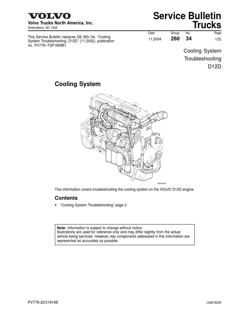 This information covers troubleshooting the cooling system on the VOLVO D12D engine.