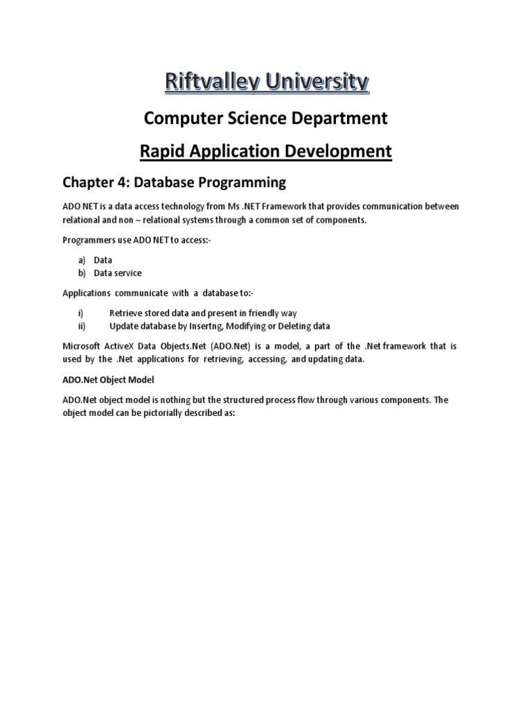 ADO.Net object model is nothing but the structured process flow through various components. The