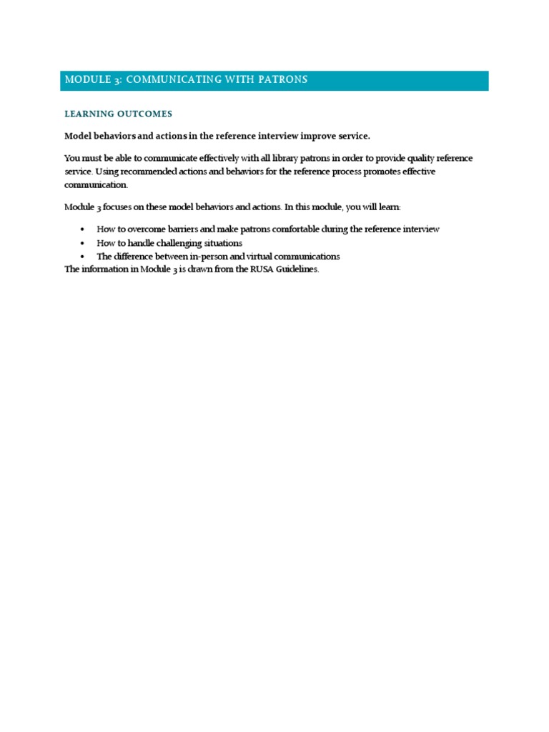 The information in Module 3 is drawn from the RUSA Guidelines.