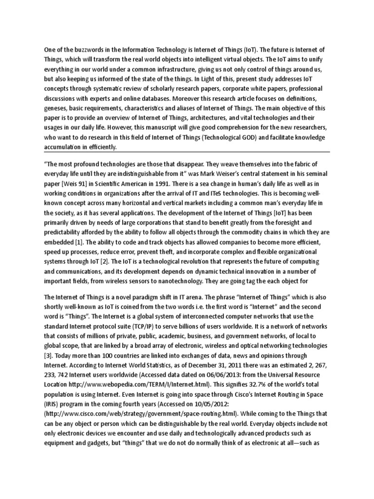 who want to do research in this field of Internet of Things (Technological GOD) and facilitate knowledge