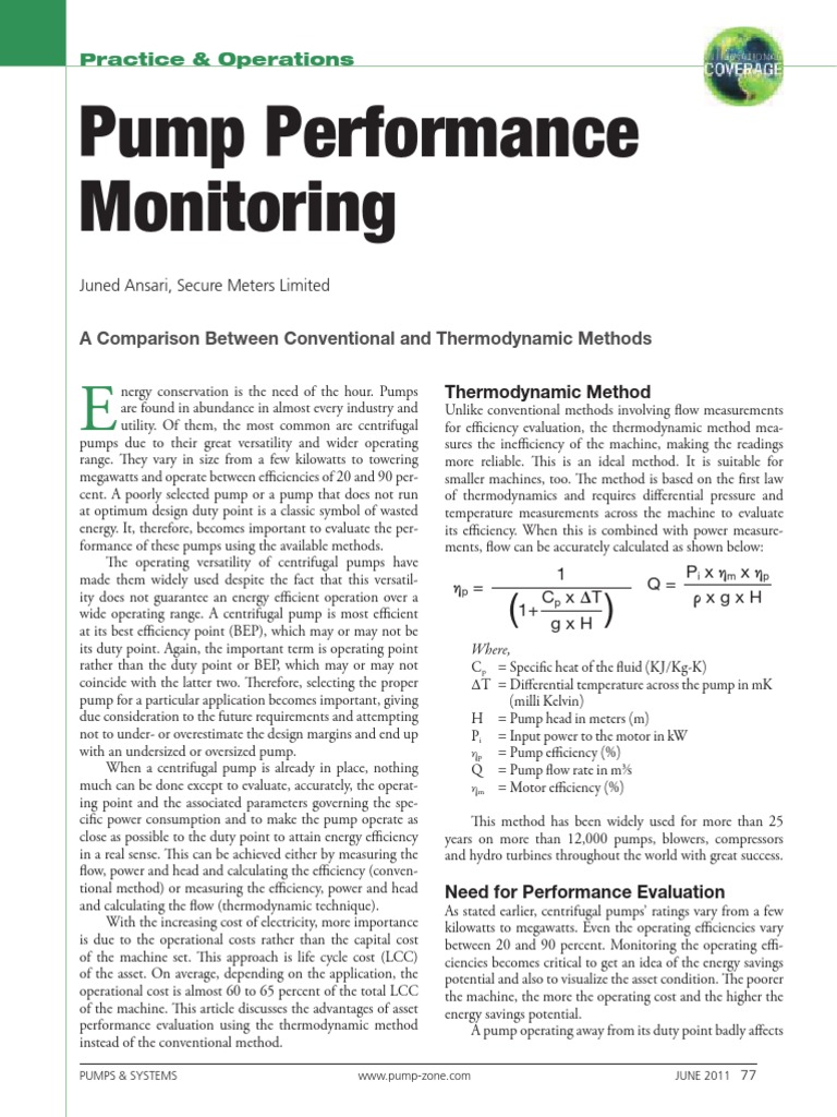 pump monitoring becomes a regular requirement. of the thermodynamic method. Sample calculations in Table 1