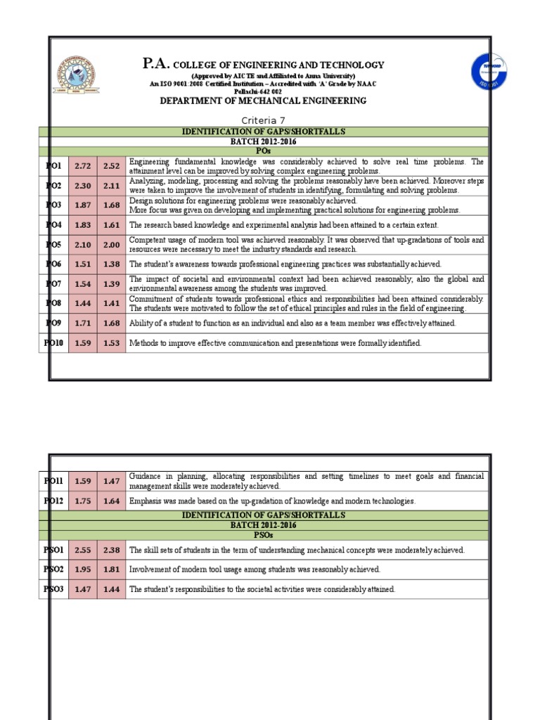 PO12 1.79 1.74 Emphasis was made based on the up-gradation of knowledge and modern technologies.