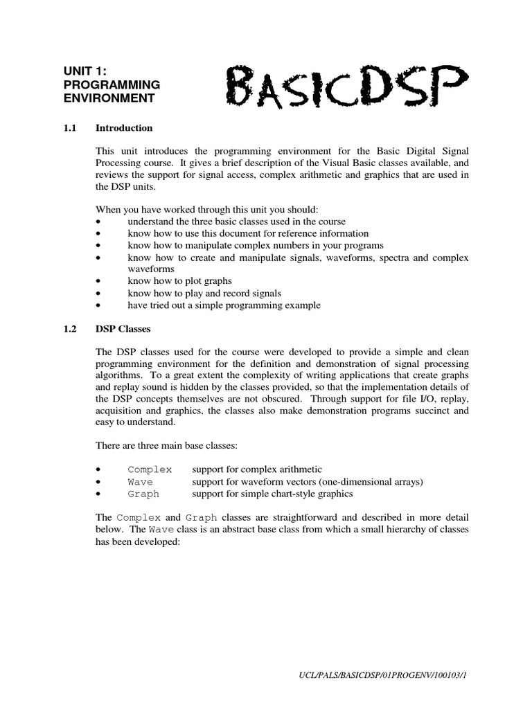 This unit introduces the programming environment for the Basic Digital Signal