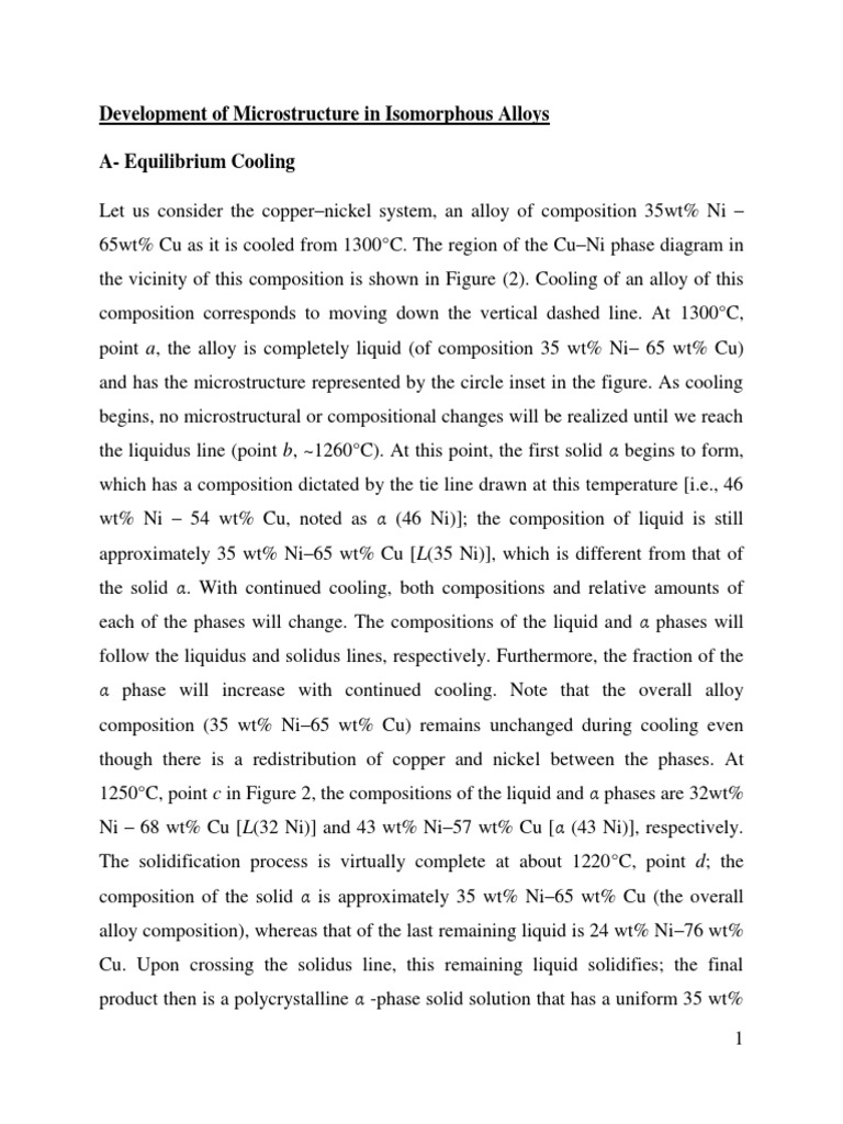 will now be discussed by considering a 35 wt% Ni65 wt% Cu alloy, the same