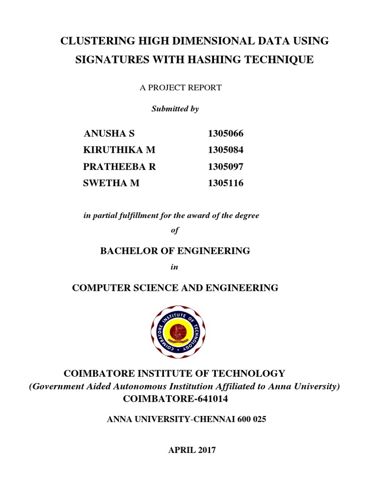 Certified that this project CLUSTERING HIGH DIMENSIONAL DATA USING SIGNATURES