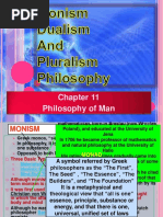 Dualism, which holds that ultimately there are two kinds of substance, and from Pluralism, which holds