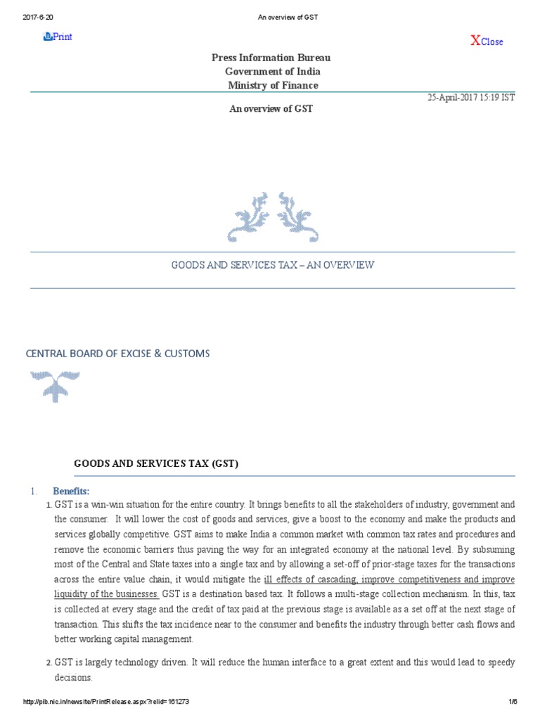 compliance.GSTislikelyimproveIndiasrankingintheEaseofDoingBusinessIndexandisestimatedtoincrease