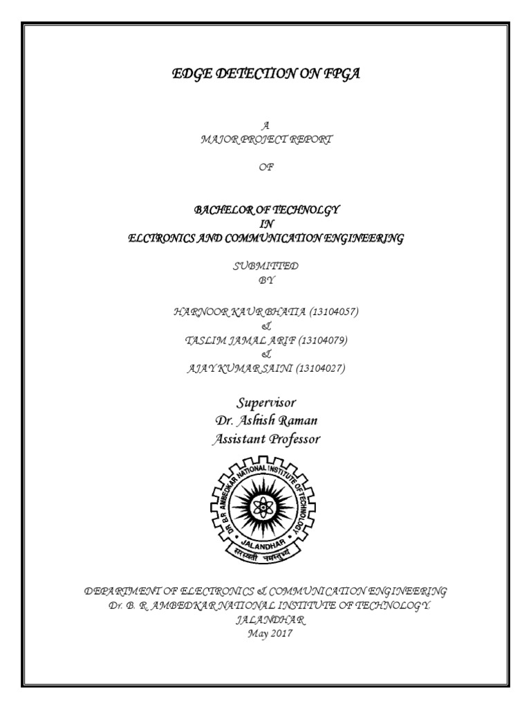 entitled, EDGE DETECTION ON FPGA in partial fulfillment of the
