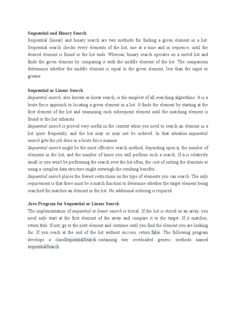 Sequential search, also known as linear search, is the simplest of all searching algorithms. It is a