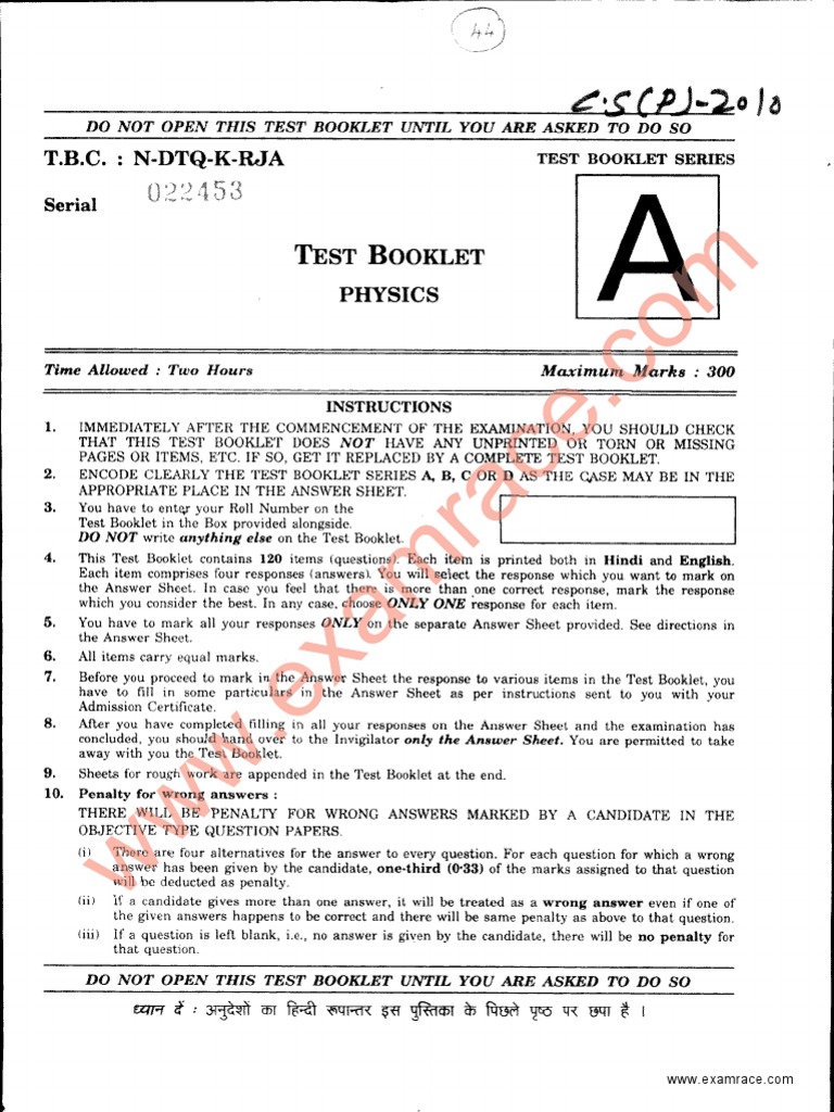 4. This Test Booklet contains 120 items (questions ). Ea ch item is printed both in Hindi and English.