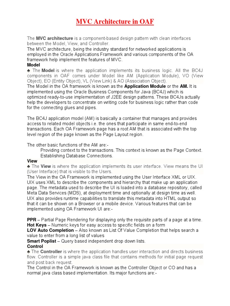 employed in the Oracle Applications Framework and various components of the OA