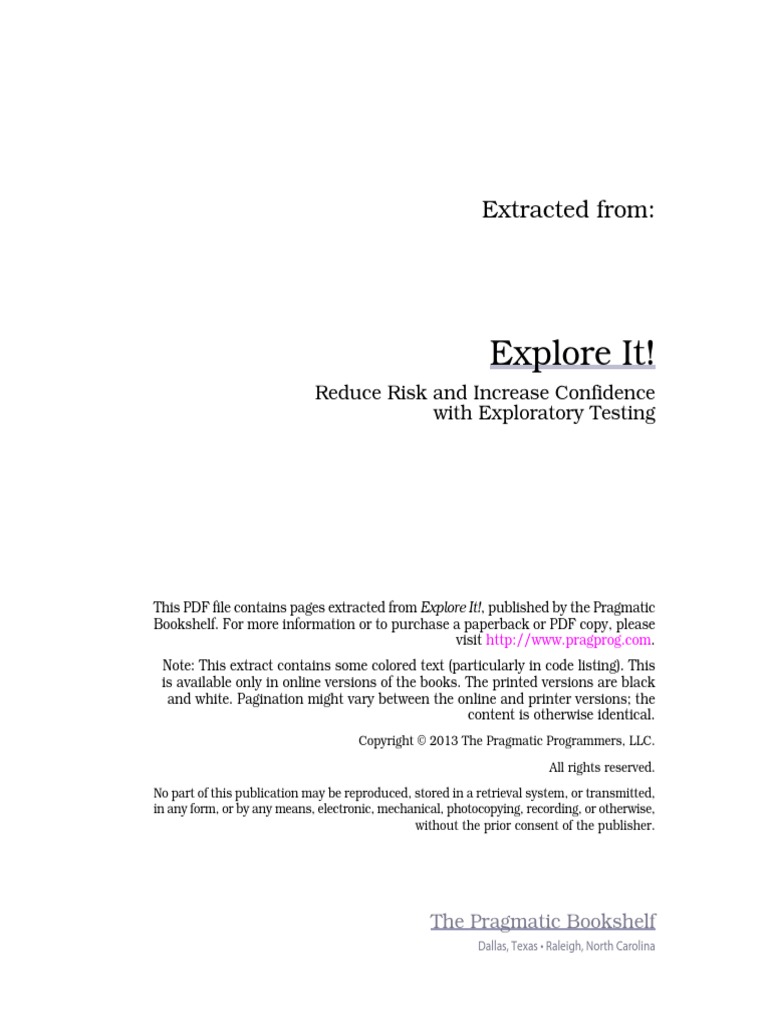 This PDF file contains pages extracted from Explore It!, published by the Pragmatic