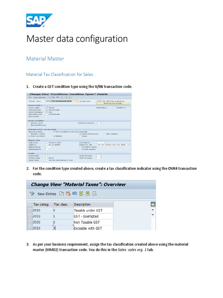 1. Create a GST condition type using the V/06 transaction code.