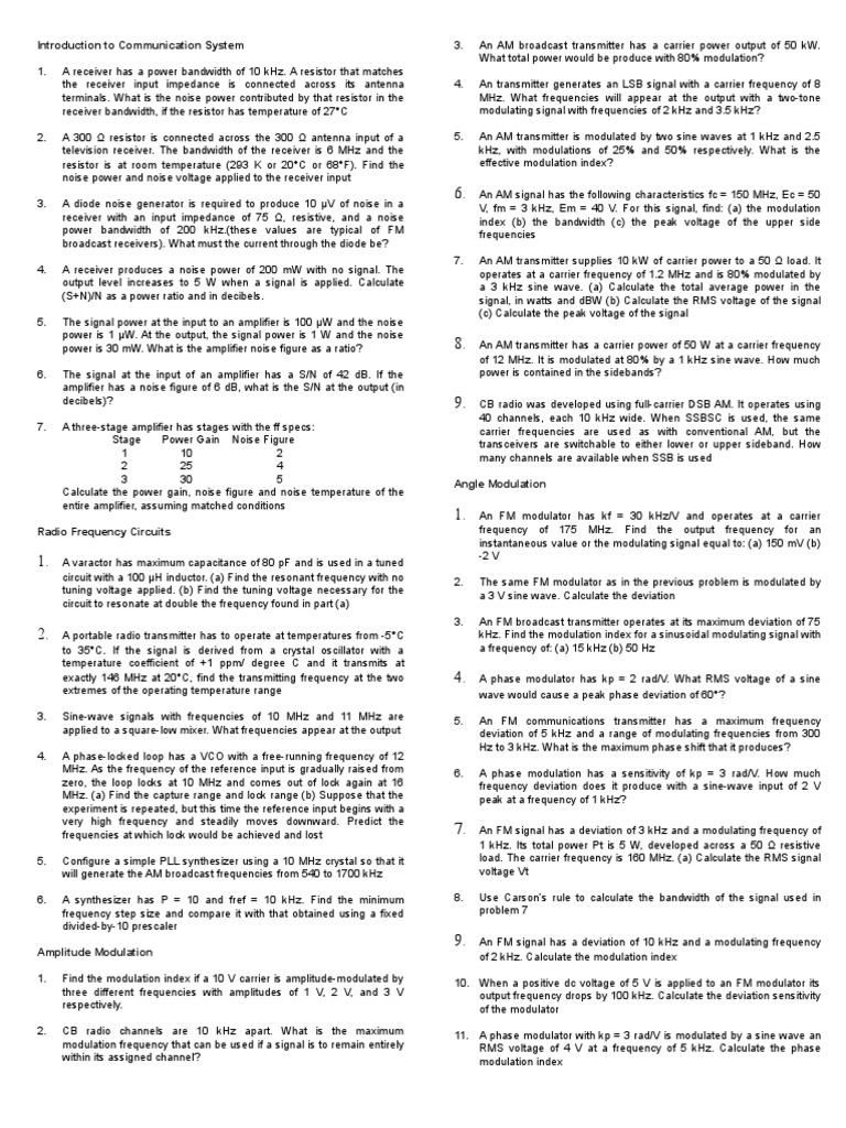 2. CB radio channels are 10 kHz apart. What is the maximum 11. A phase modulator with kp = 3 rad/V is modulated by a sine wave an