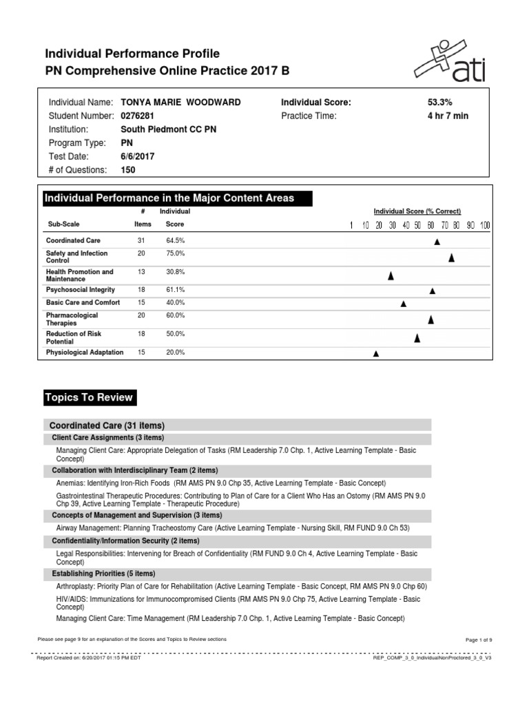 Please see page 9 for an explanation of the Scores and Topics to Review sections Page 1 of 9