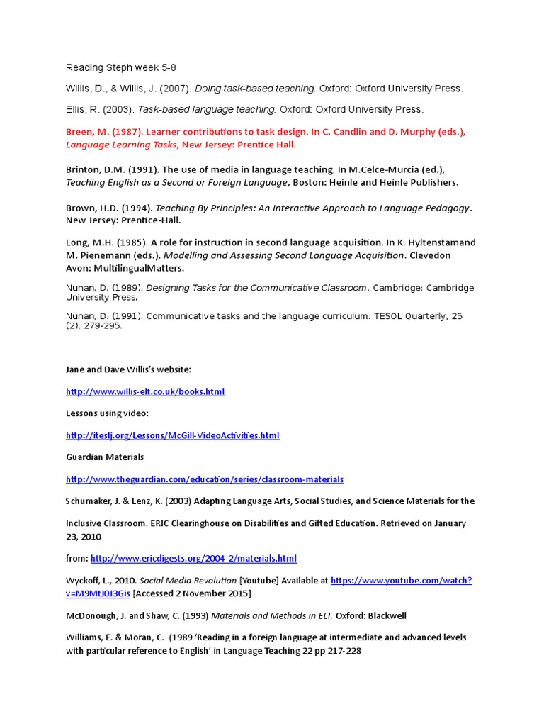 Breen, M. (1987). Learner contributions to task design. In C. Candlin and D. Murphy (eds.),