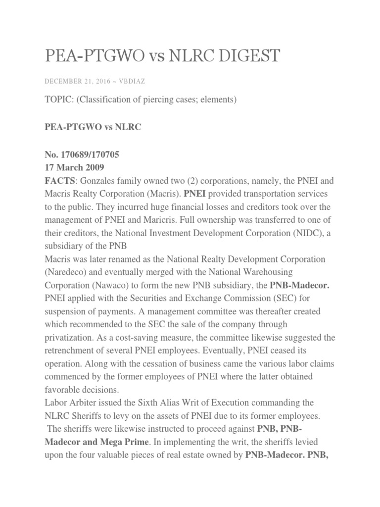 NLRC Sheriffs to levy on the assets of PNEI due to its former employees.