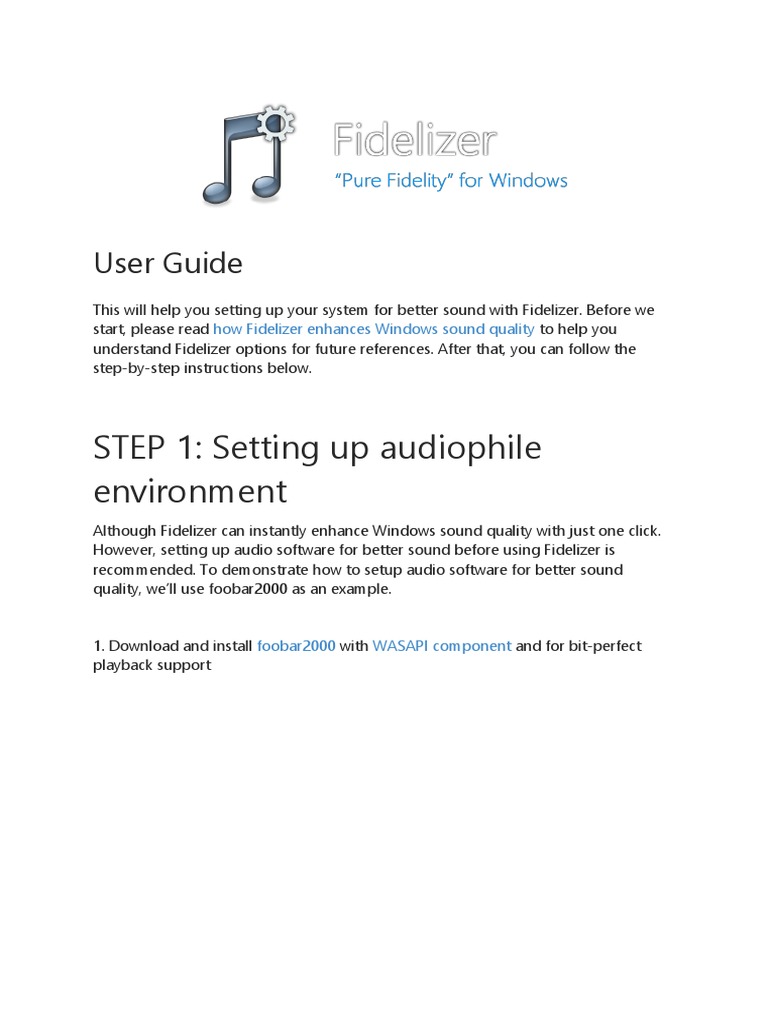start, please read how Fidelizer enhances Windows sound quality to help you