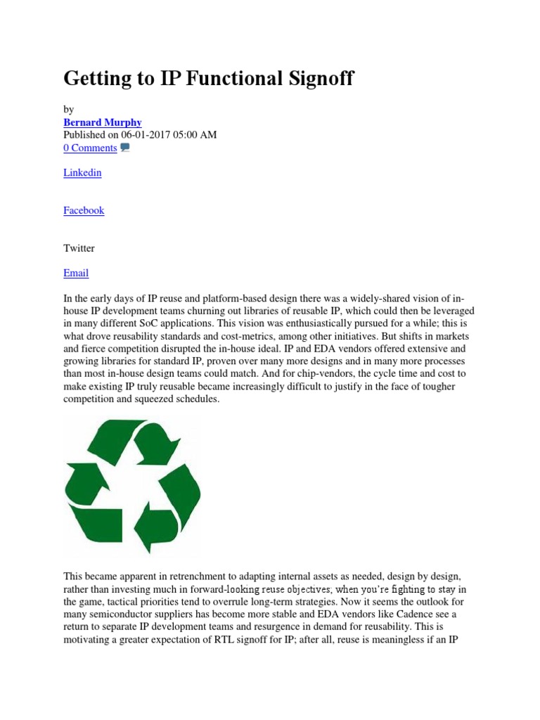design quality by sharing proven IP. Improving IP quality through better RTL signoff is an