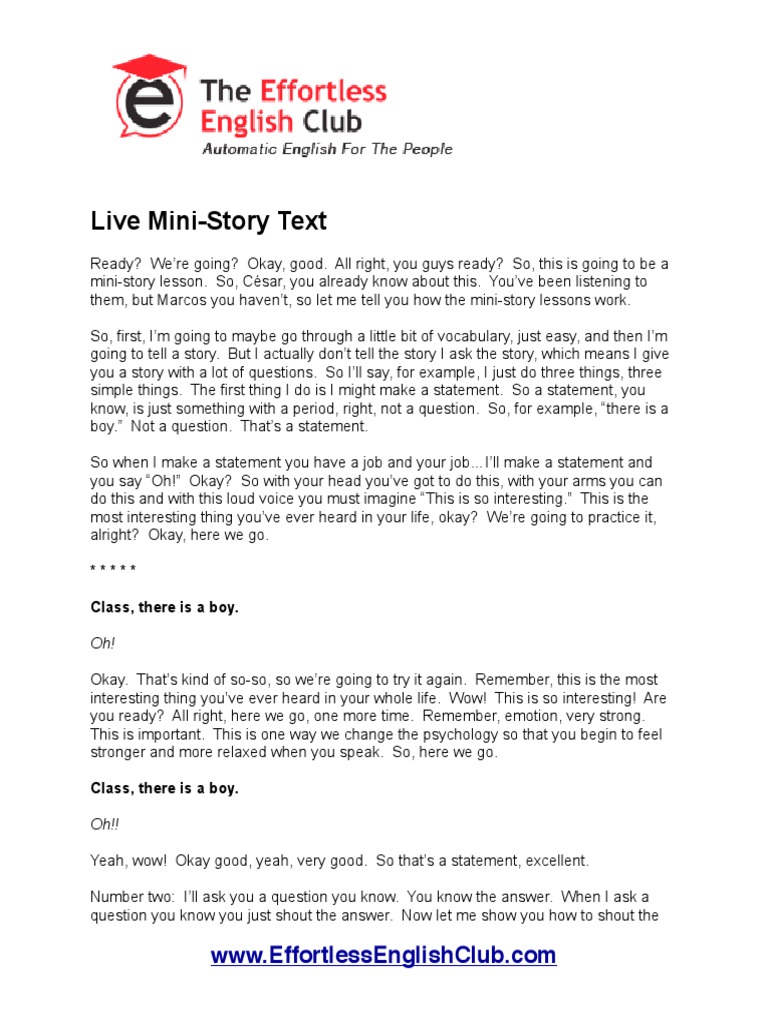 mini-story lesson. So, Csar, you already know about this. Youve been listening to